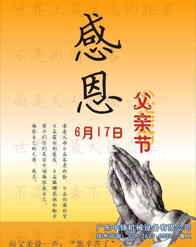 陪伴是更好的感恩!孝順,一輩子都還不完 !廣東中鑄機械設(shè)備有限公司的全體員工祝愿天下父母身體健康、壽比南山、節(jié)日快樂!