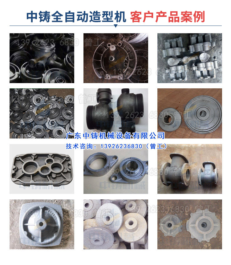 廣東中鑄機械設(shè)備有限公司研發(fā)的全自動水平造型機屬于國內(nèi),已先后完成國內(nèi)數(shù)十個省份的鑄造廠的造型工程,例如浙江、廣西、湖南、重慶、湖北、河南、安徽、江西、河北、福建等省份,同時產(chǎn)品遠銷韓國、越南和阿爾及利亞等國家,并獲得用戶和當?shù)丨h(huán)保部門的一致好評!我們對不同行業(yè)的鑄件產(chǎn)品都有豐富的造型經(jīng)驗,針對汽車配件,機械配件,鐵路器材,建筑零件,灶具爐具,電力器材,五金制品等行業(yè)的鑄件不同的特性,我們在全自動水平造型機上都有專門的設(shè)計以幫助客戶提高鑄件的生產(chǎn)效率以及成品率,降低人工成本,降低維修次數(shù)。
